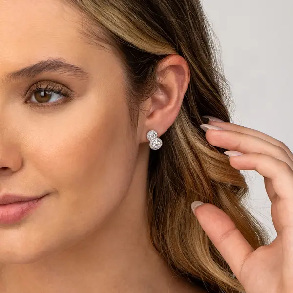 Brinco Prata Rodinada Clássico Duplo Cravejado