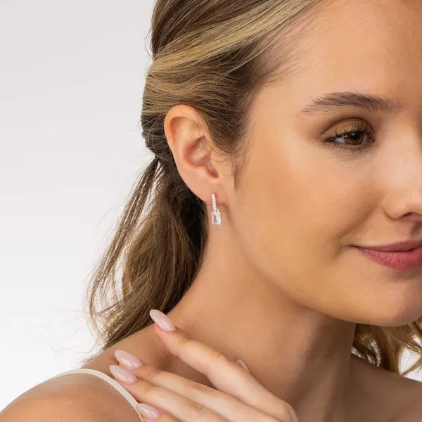 Brinco Prata Zircônia Quadrada Pendente
