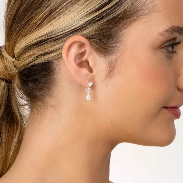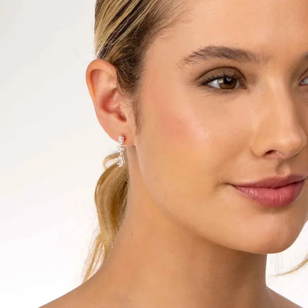 Brinco Prata Zircônia Retangular
