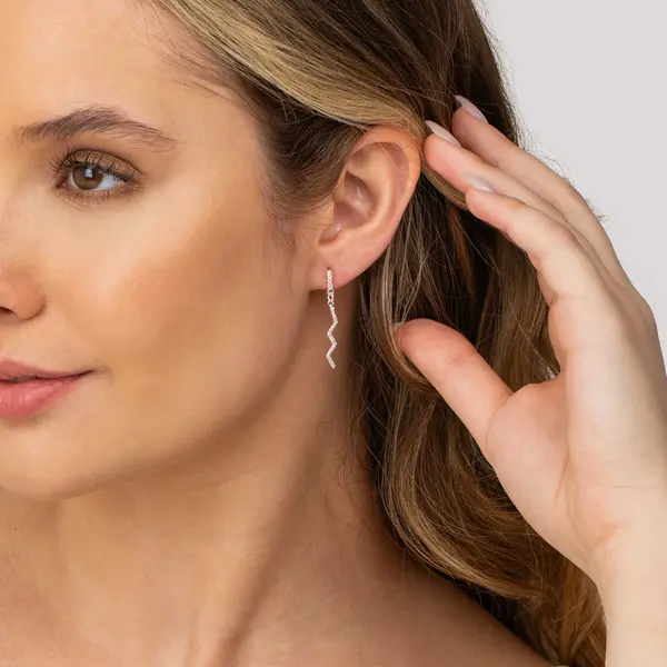Brinco Prata Zircônias Zig Zag
