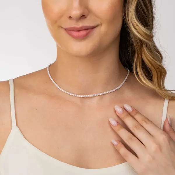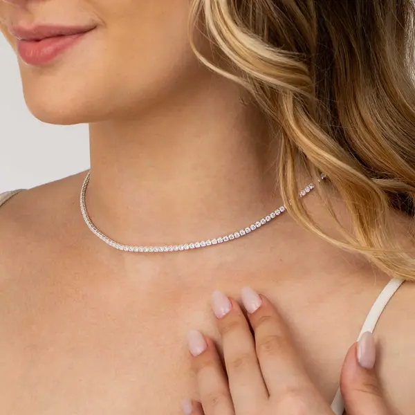 Choker Prata Leve Riviera Zircônias Quadradas Médias Brancas