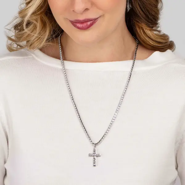 Corrente Aço com Zircônias e Pingente Cruz com Zircônias 60cm 3mm