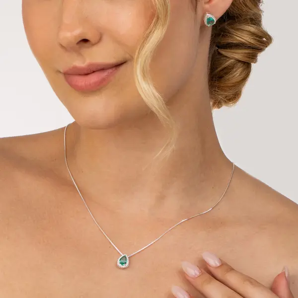 Conjunto Prata Leve Clássico Gota com Zircônias Verde