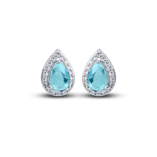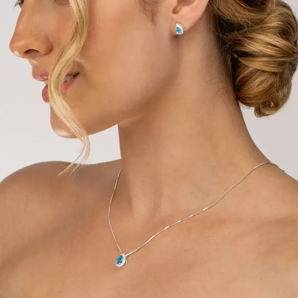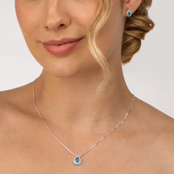 Conjunto Prata Leve Clássico Gota Zircônias Azul