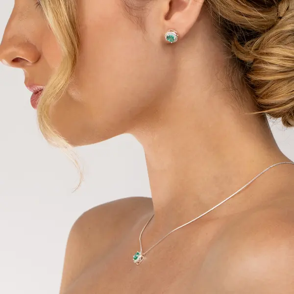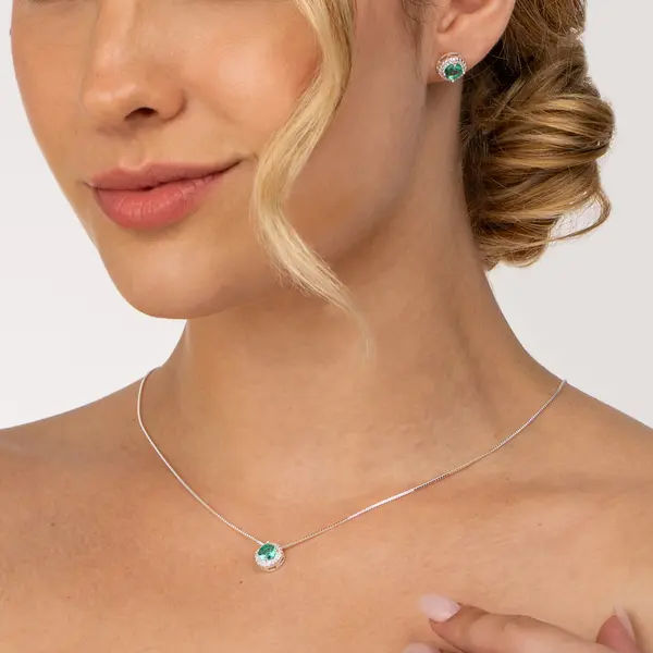 Conjunto Prata Leve Clássico Redondo com Zircônias Verde