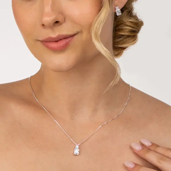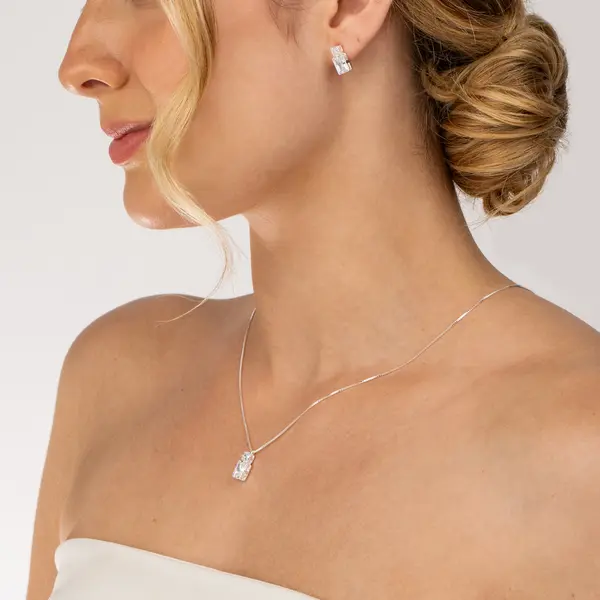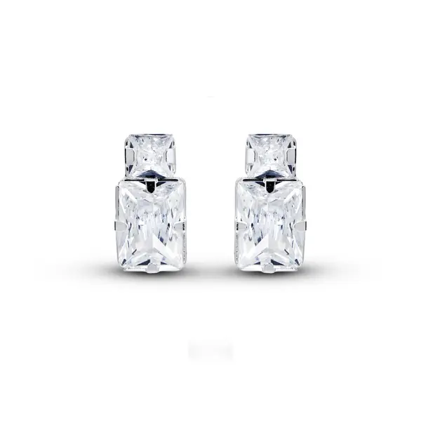 Conjunto Prata Leve Duas Zircônias Quadradas