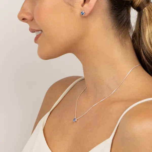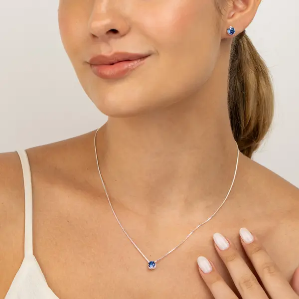 Conjunto Prata Leve Redondo em Zircônia Azul Escuro