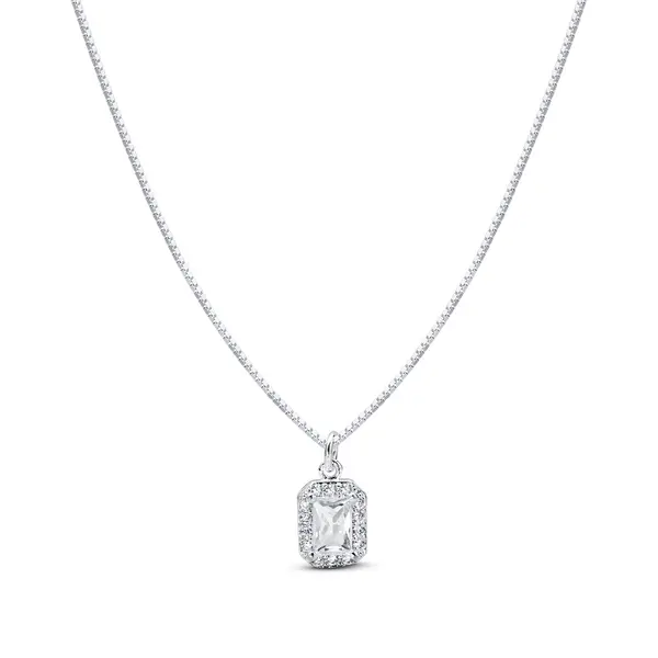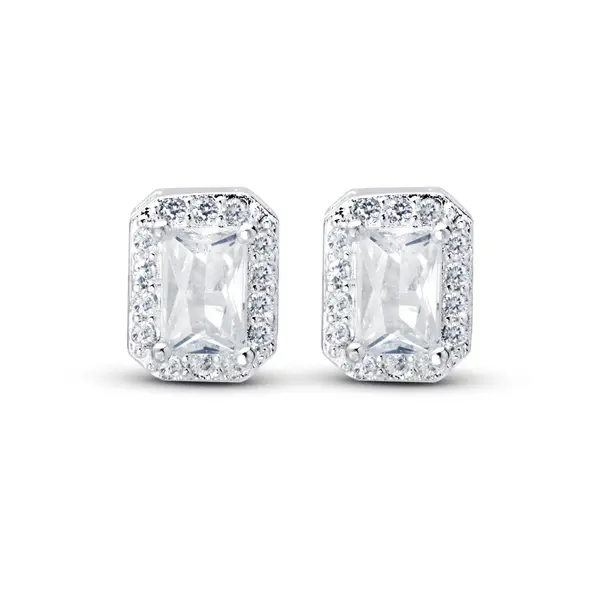 Conjunto Prata Leve Retangulo Clássico Cravejado
