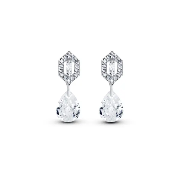 Conjunto Prata Leve Sun Hexágono e Gota em Zircônia