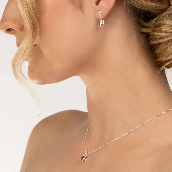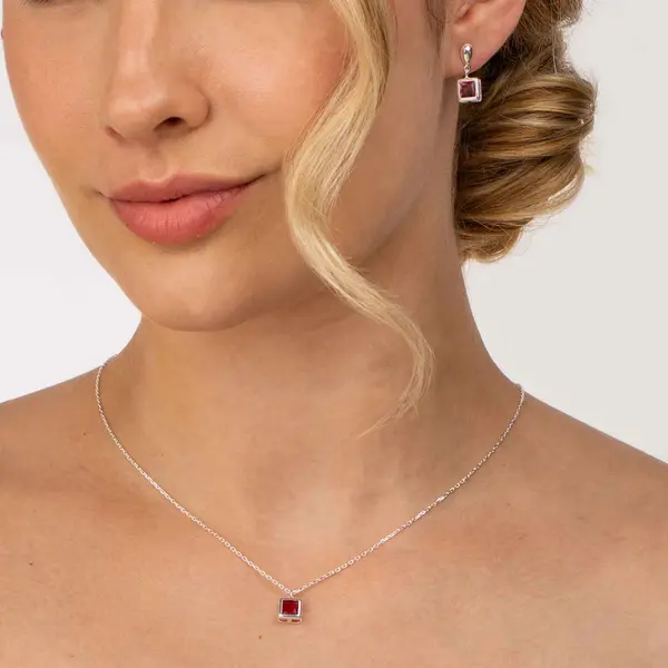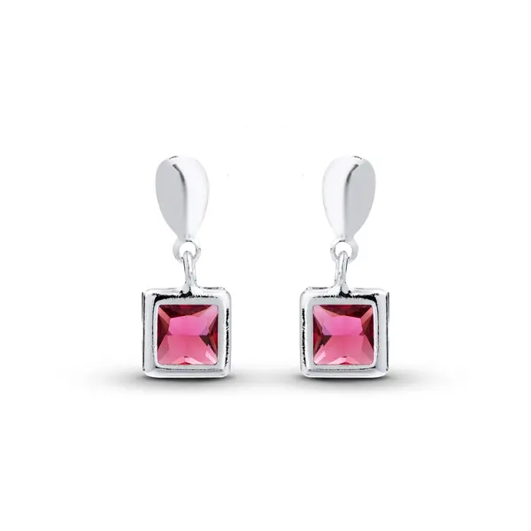 Conjunto Prata Leve Zircônia Quadrada Rosa