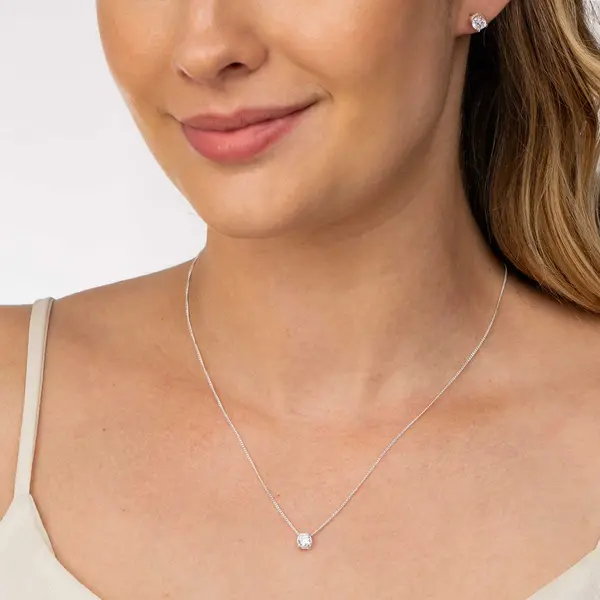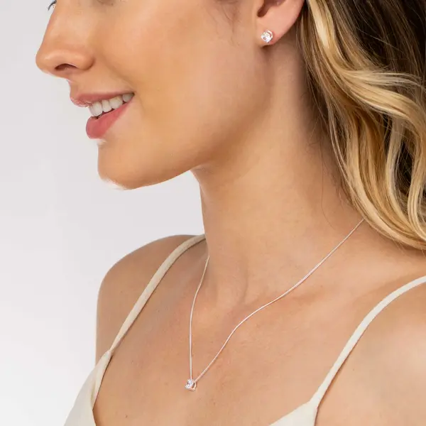 Conjunto Prata Redondo com Zircônia