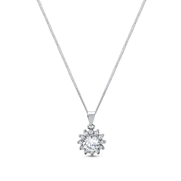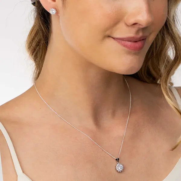 Conjunto Prata Rodinada Flor Cravejada em Zircônias Grande