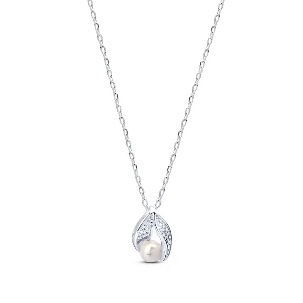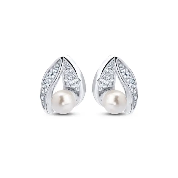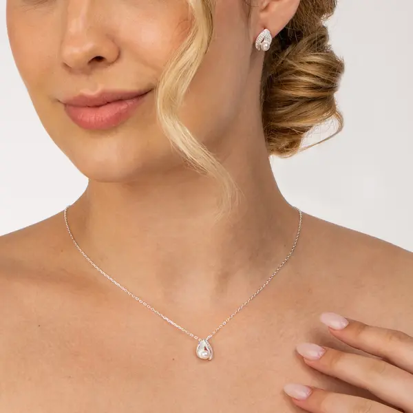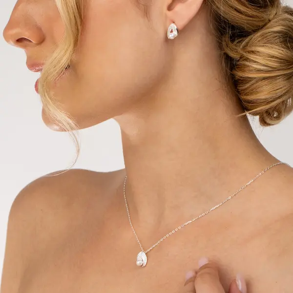 Conjunto Prata Folha Cravejada com Pérola