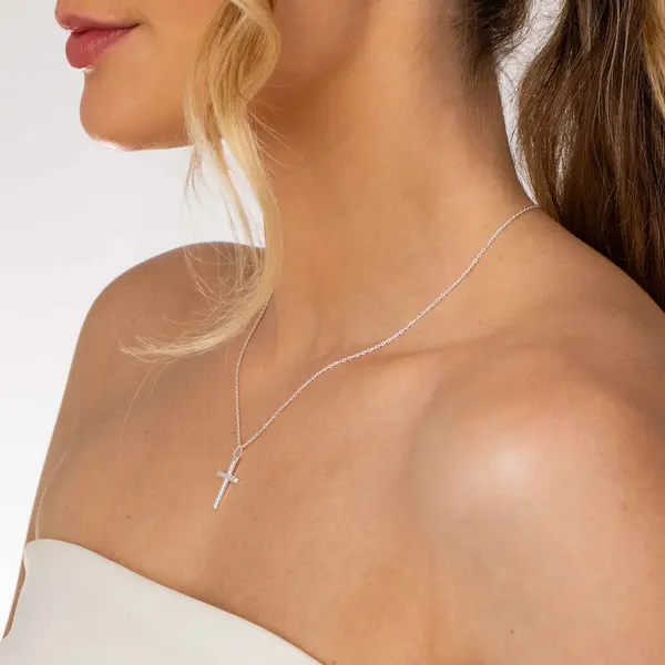 Gargantilha Prata Cruz com Zircônias