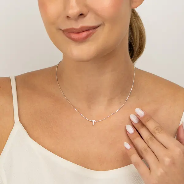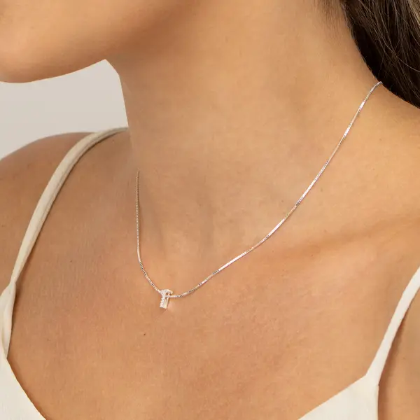 Gargantilha Prata Letra Com Zircônias 40cm Letra T