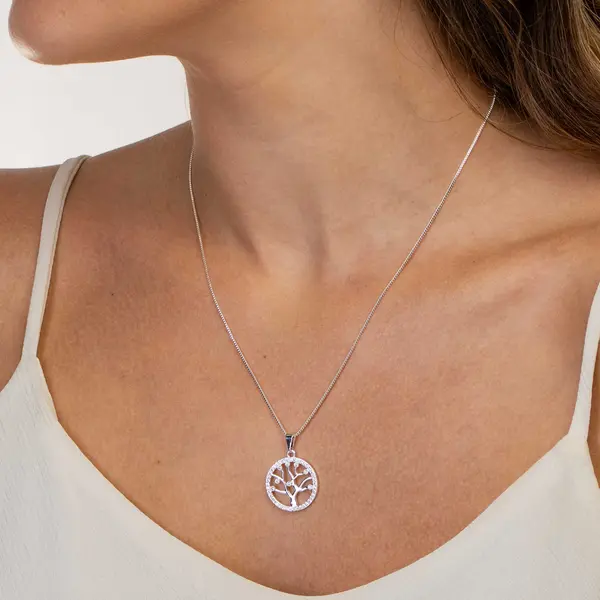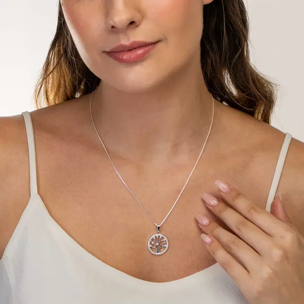 Gargantilha Prata Leve Árvore da Vida com Zircônias Brancas