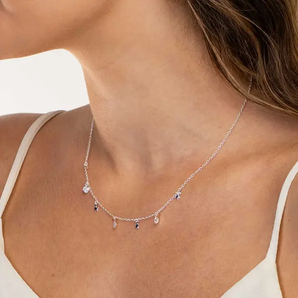 Gargantilha Prata Leve Estrelas e Zircônias