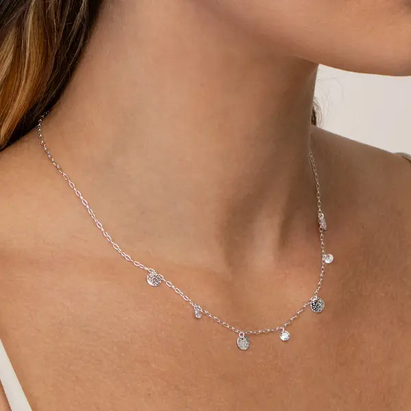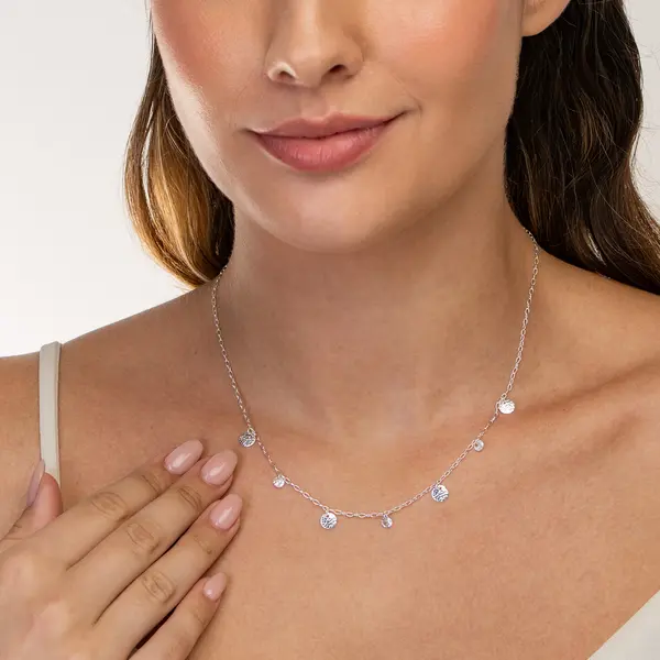 Gargantilha Prata Leve Plaquinhas Redondas Trabalhadas