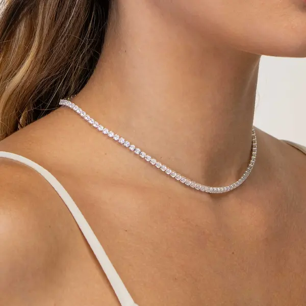 Gargantilha Prata Leve Riviera Quadrada Grande