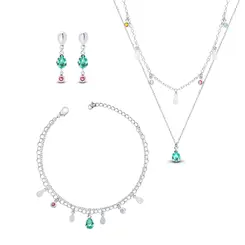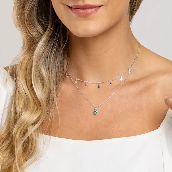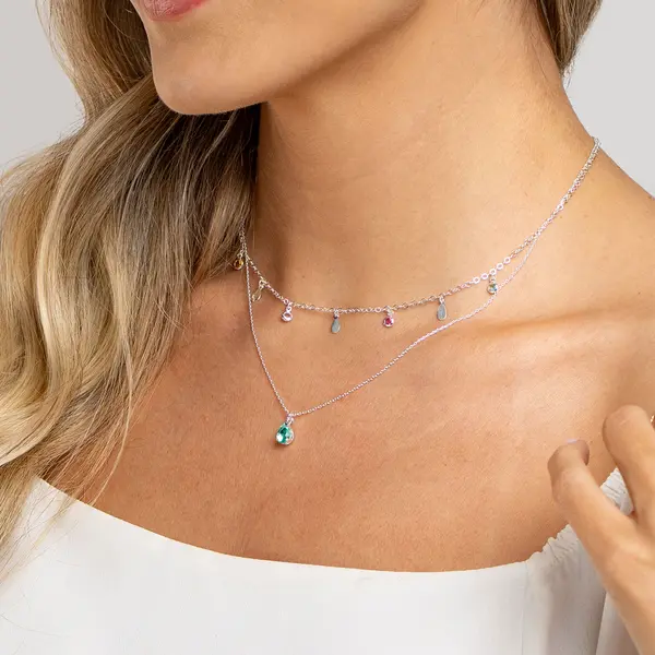 Gargantilha Prata Leve Sun Dupla Gota Verde Água
