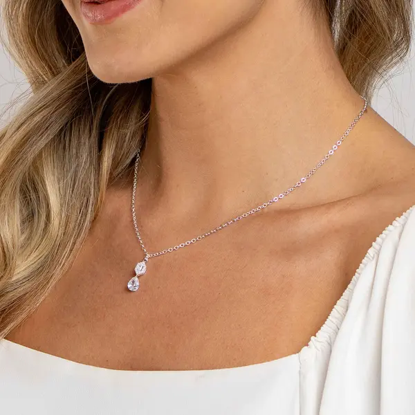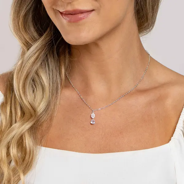 Gargantilha Prata Leve Sun Hexágono e Gota em Zircônia