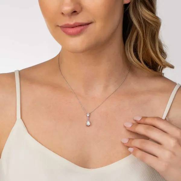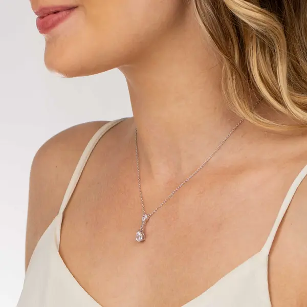 Gargantilha Prata Rodinada Duas Gotas em Zircônia