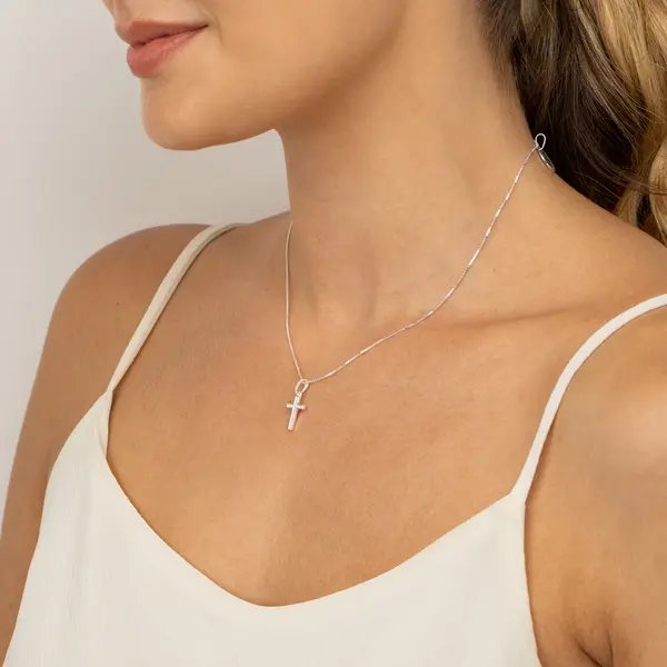 Pingente Prata Cruz Zircônias