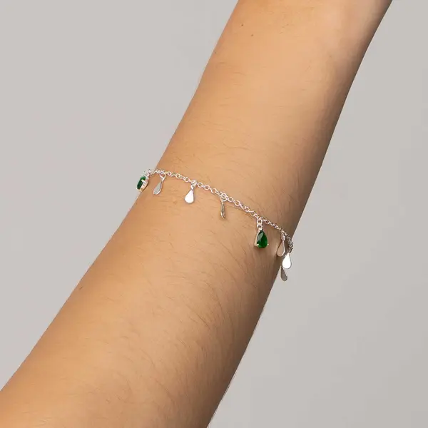 Pulseira Prata Gotas Lisas e Zircônias Verdes