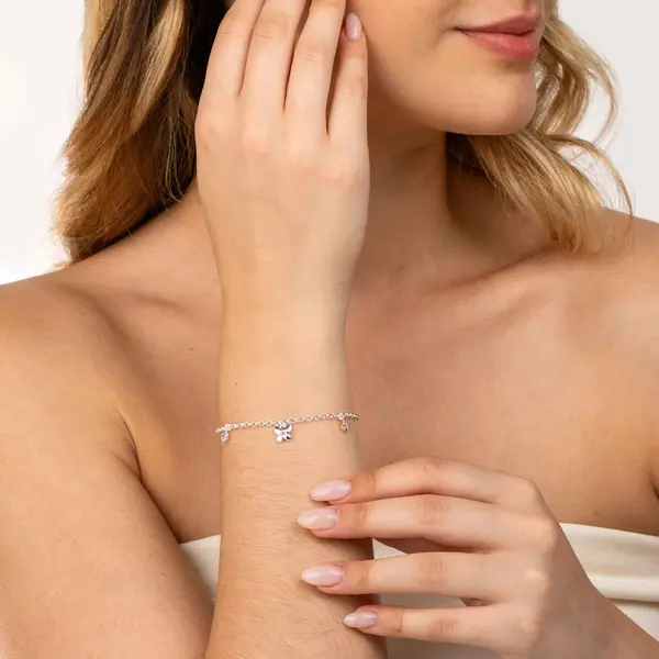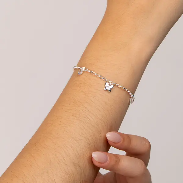 Pulseira Prata Leve Borboleta com Zircônia