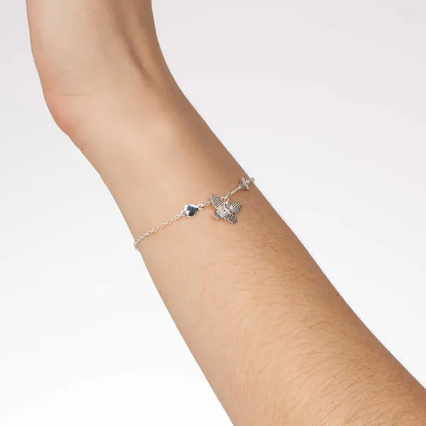 Pulseira Prata Leve Pingente Ponto Luz e Borboleta