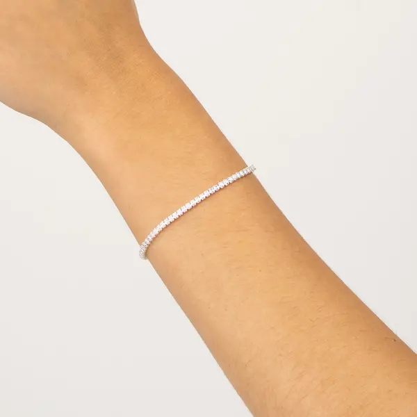 Pulseira Prata Leve Riviera Grossa Pedras Brancas