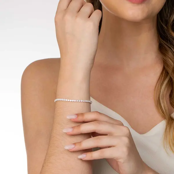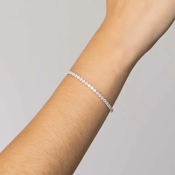 Pulseira Prata Leve Riviera Zircônias Grandes Brancas