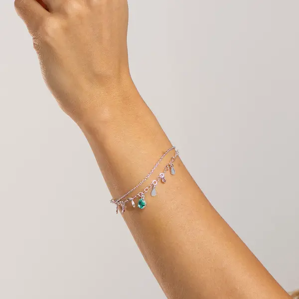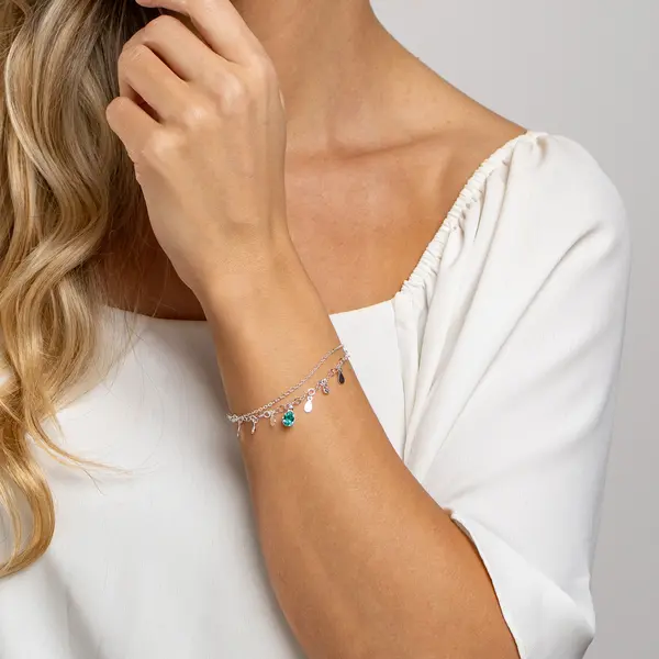 Pulseira Prata Leve Sun Dupla Gota Verde Água